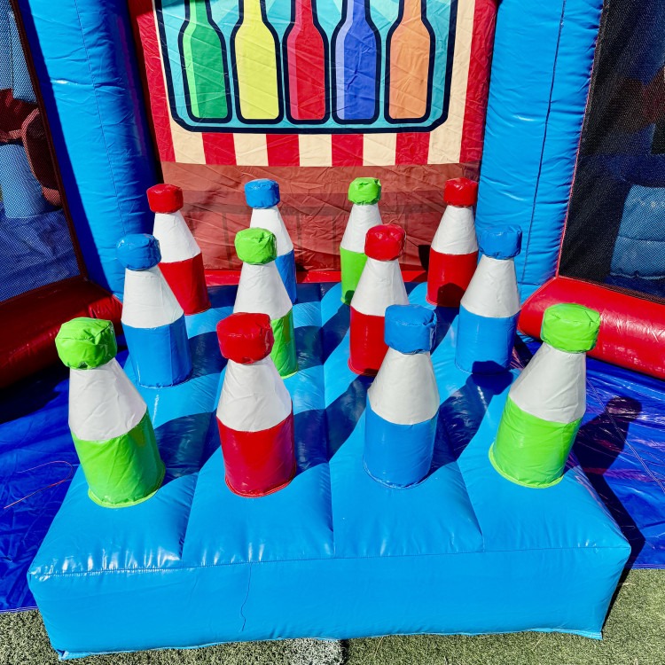 - OCCUPANCY: A maximum of 5-6 kids of equal size at one time for bounce houses, and 1 person at a time for slides is what most inflatable manufacturers recommend.